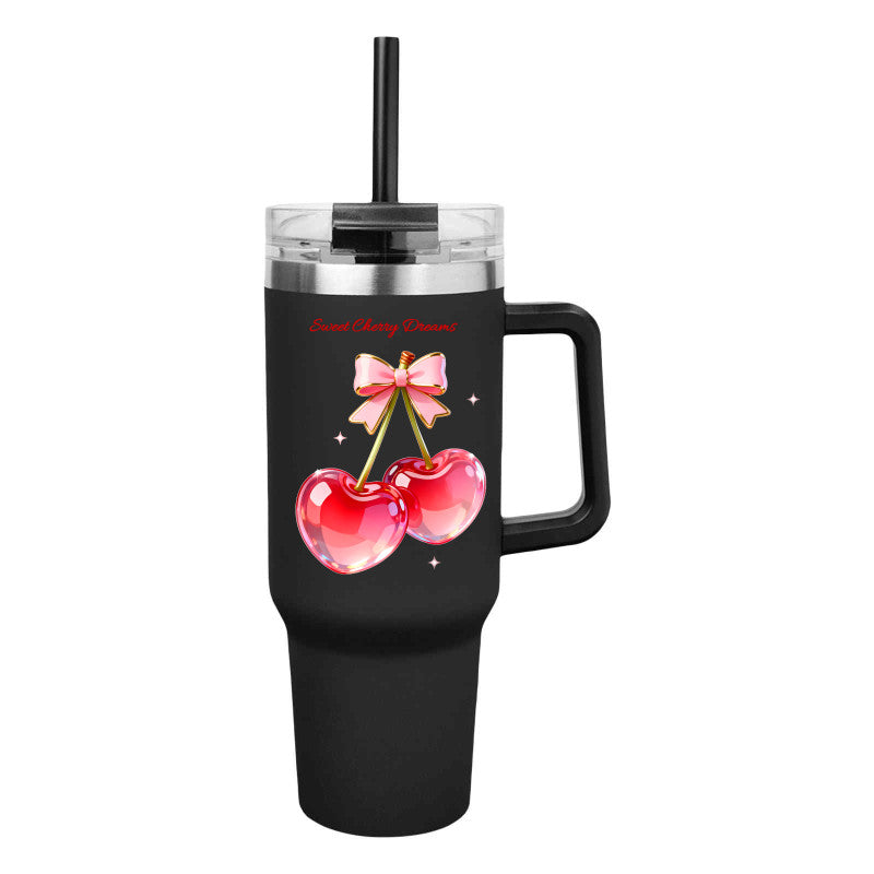 Meet your new hydration bestie — the Cherry Chill 40oz Stainless Tumbler, a cute-yet-powerful travel cup designed to keep up with your sweetest days. Featuring an adorable cherry design and a sturdy handle, this tumbler brings together style, durability, and long-lasting temperature control so you can sip in aesthetic comfort everywhere you go.